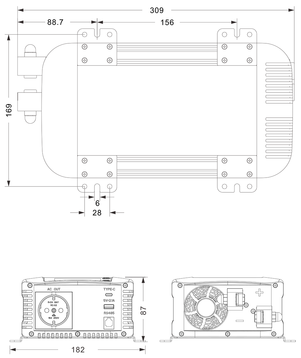 الرسومات الميكانيكية:(309x182x87 ملم)