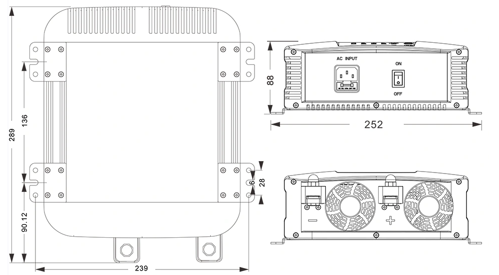 الرسومات الميكانيكية:(289×252×88 ملم)