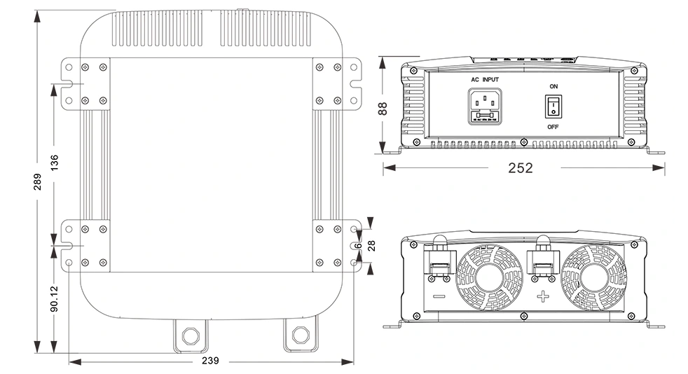 الرسومات الميكانيكية:(289×252×88 ملم)