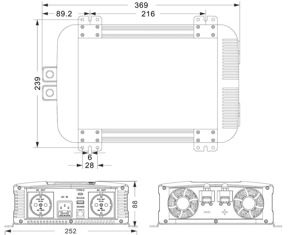 الرسومات الميكانيكية:(369 × 252 × 88 ملم)