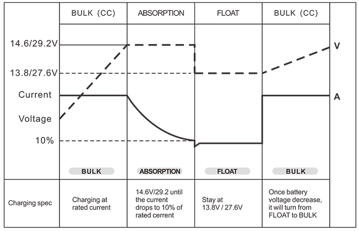 التحكم في البطارية (شواحن البطاريات ثلاثية المراحل) السائبة/امتصاص/تعويم