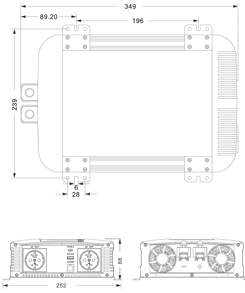 الرسومات الميكانيكية:(349 × 252 × 88 ملم)