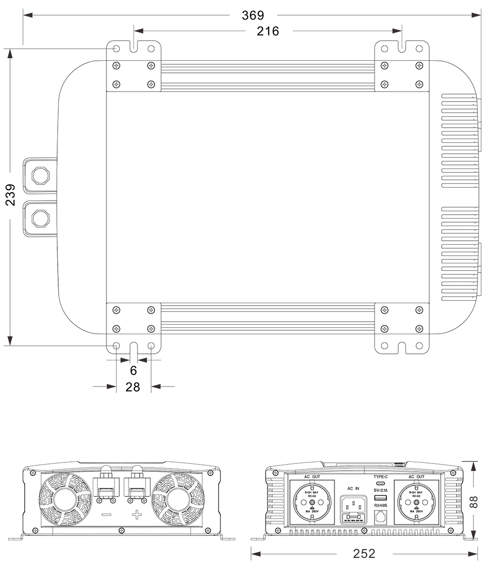 الرسومات الميكانيكية:(369 × 252 × 88 ملم)