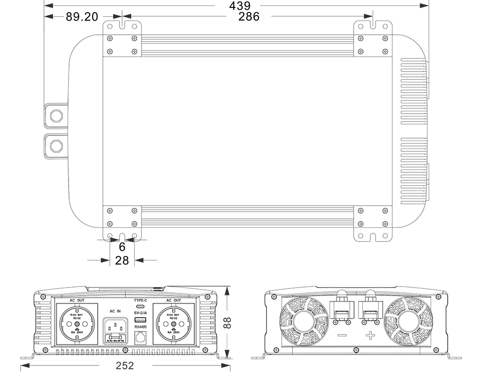 الرسومات الميكانيكية:(439 × 252 × 88 ملم)