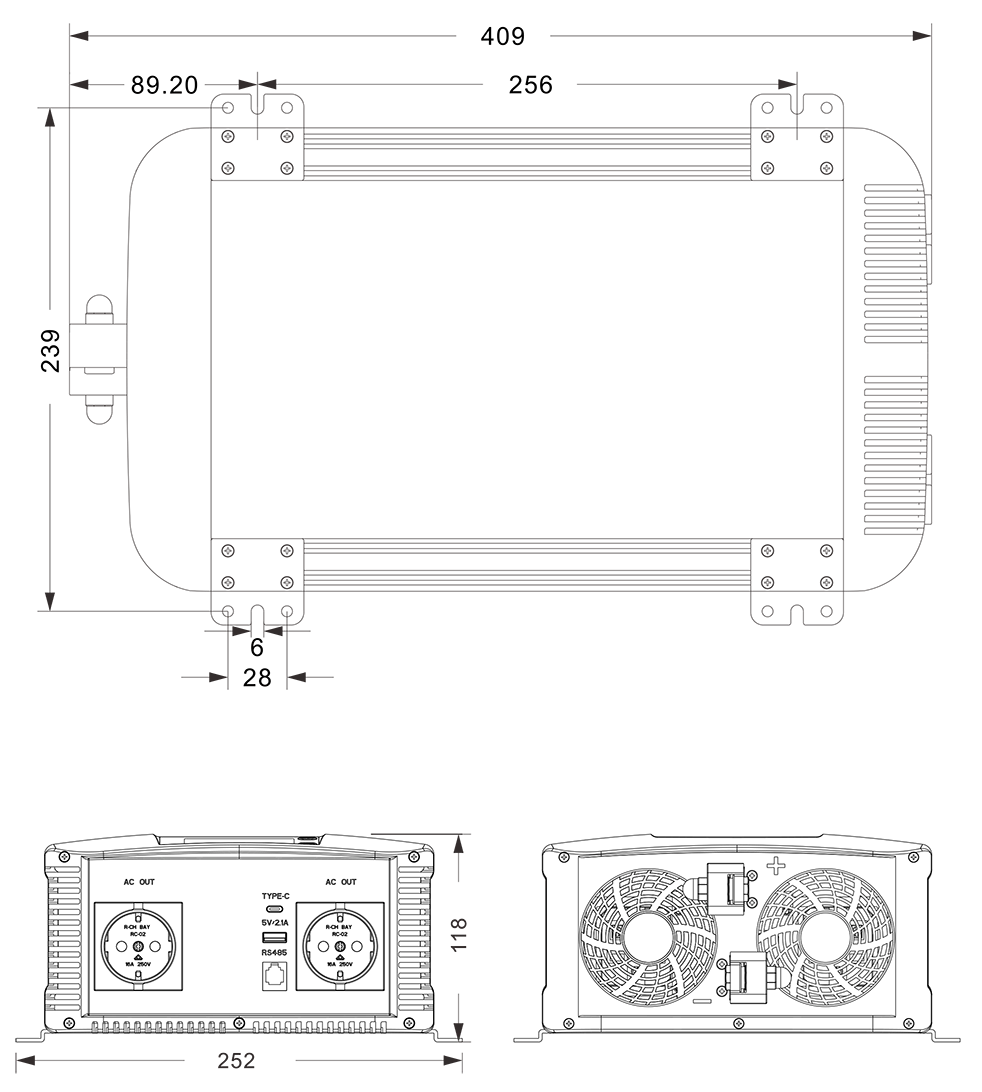 الرسومات الميكانيكية:(409 × 252 × 118 ملم)