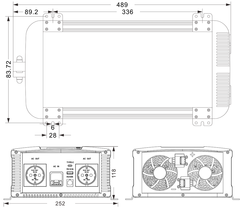 الرسومات الميكانيكية:(489 × 252 × 118 ملم)