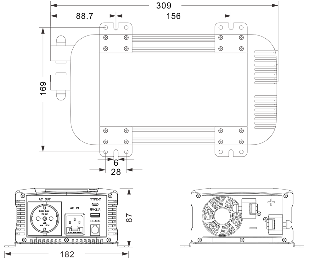 الرسومات الميكانيكية:(309x182x87 ملم)