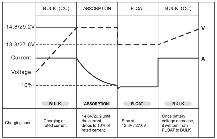 التحكم في البطارية (شواحن البطاريات ثلاثية المراحل) السائبة/امتصاص/تعويم