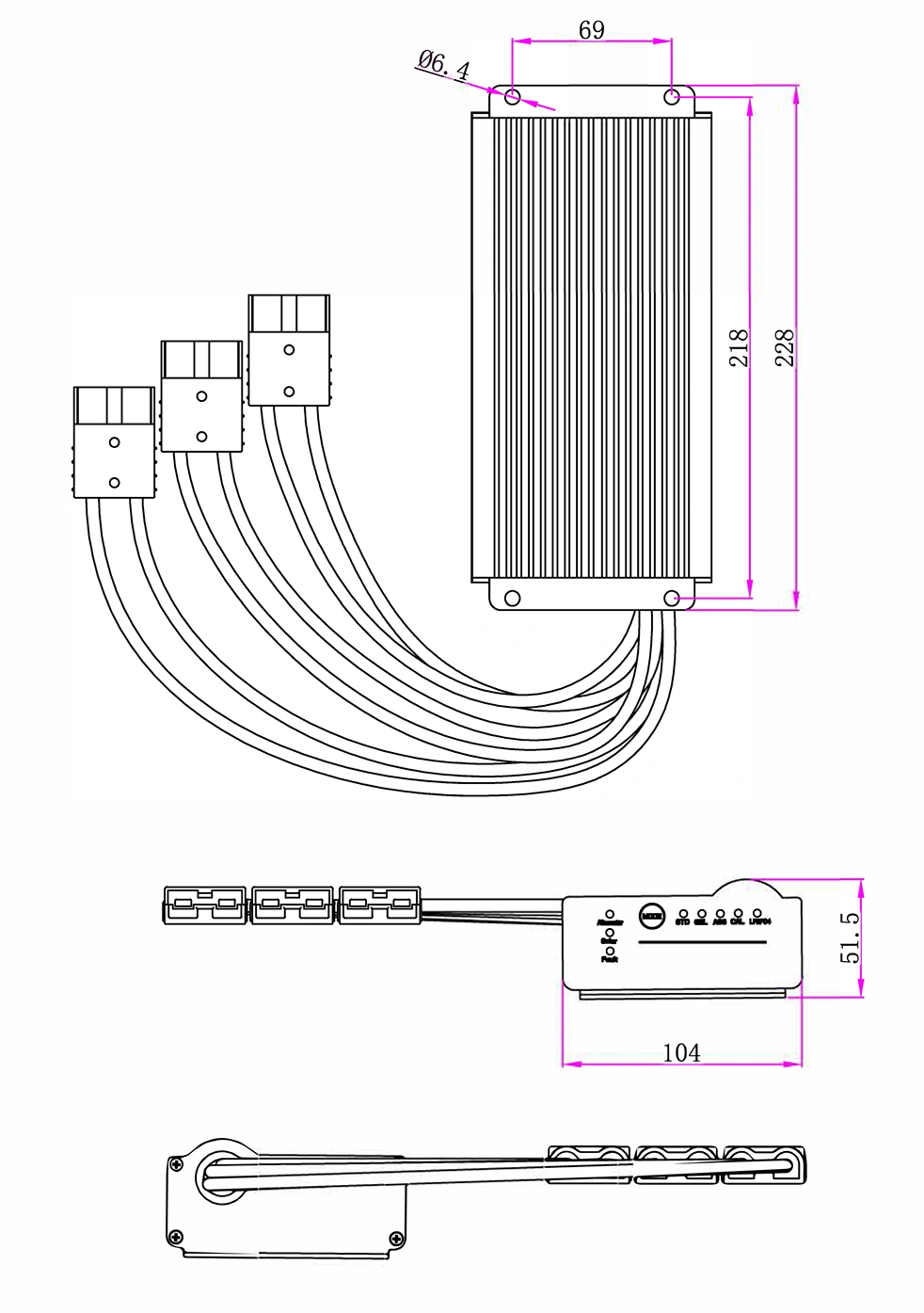 الرسومات الميكانيكية:(228 × 104 × 51.5 ملم)