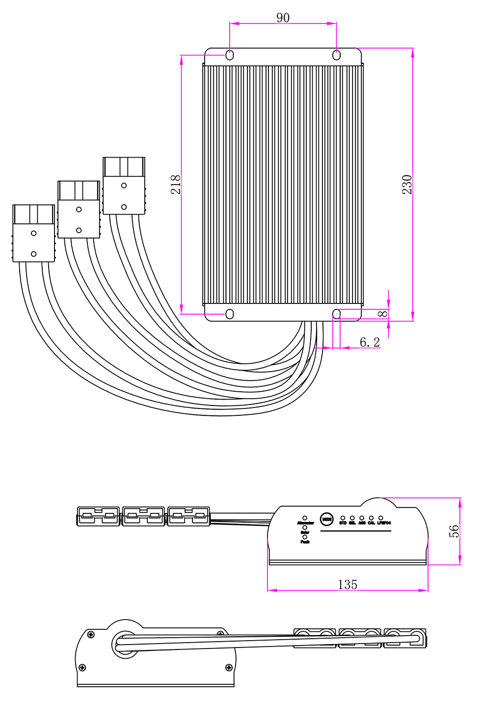 الرسومات الميكانيكية:(230 × 135 × 56 ملم)