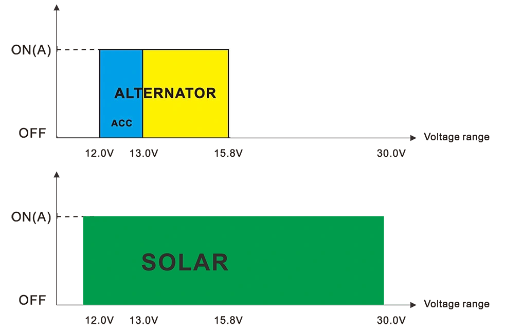 ●مدخل التيار المتردد العالمي 12.0V-30.0V士0.2V للطاقة الشمسية/12.0V-15.BVH0.2V للسيارة